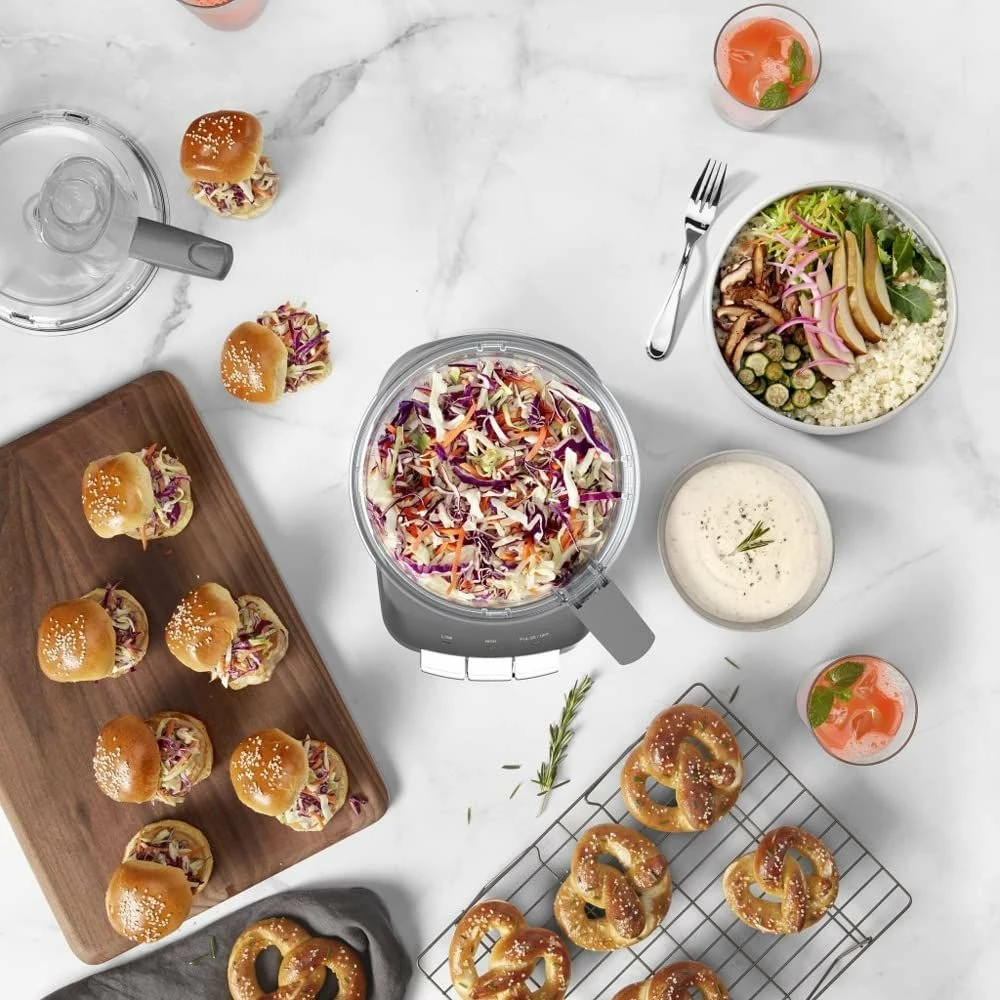 - Handles 10 cups of sliced or shredded food, 6 cups of chopped food, or 2.5 cups of dough