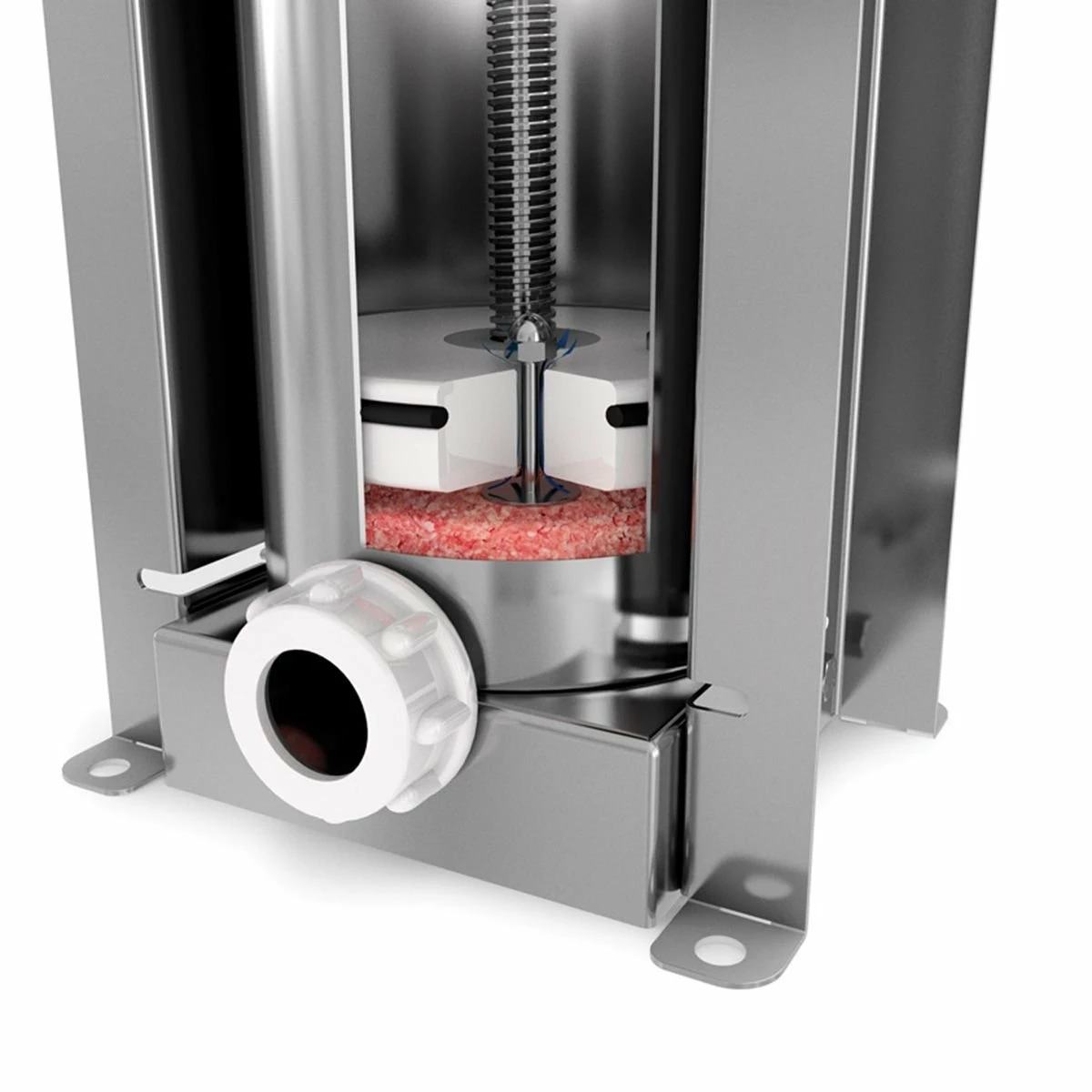 Proudly manufactured in the USA by The Sausage Maker, this 5# Stainless Steel Sausage Stuffer is designed for precision and durability that you can rely on! The stainless steel frame secures the cylinder during use while providing stability and precise piston alignment. Hardened resin gears mounted on double-threaded steel rod provide smooth operation and give exceptional control during the stuffing process. The sturdy base can be mounted to most surfaces for added stability. Both the base and frame are made of 304 food-grade stainless steel which resists corrosion and provides easy-to-clean sanitary surfaces.