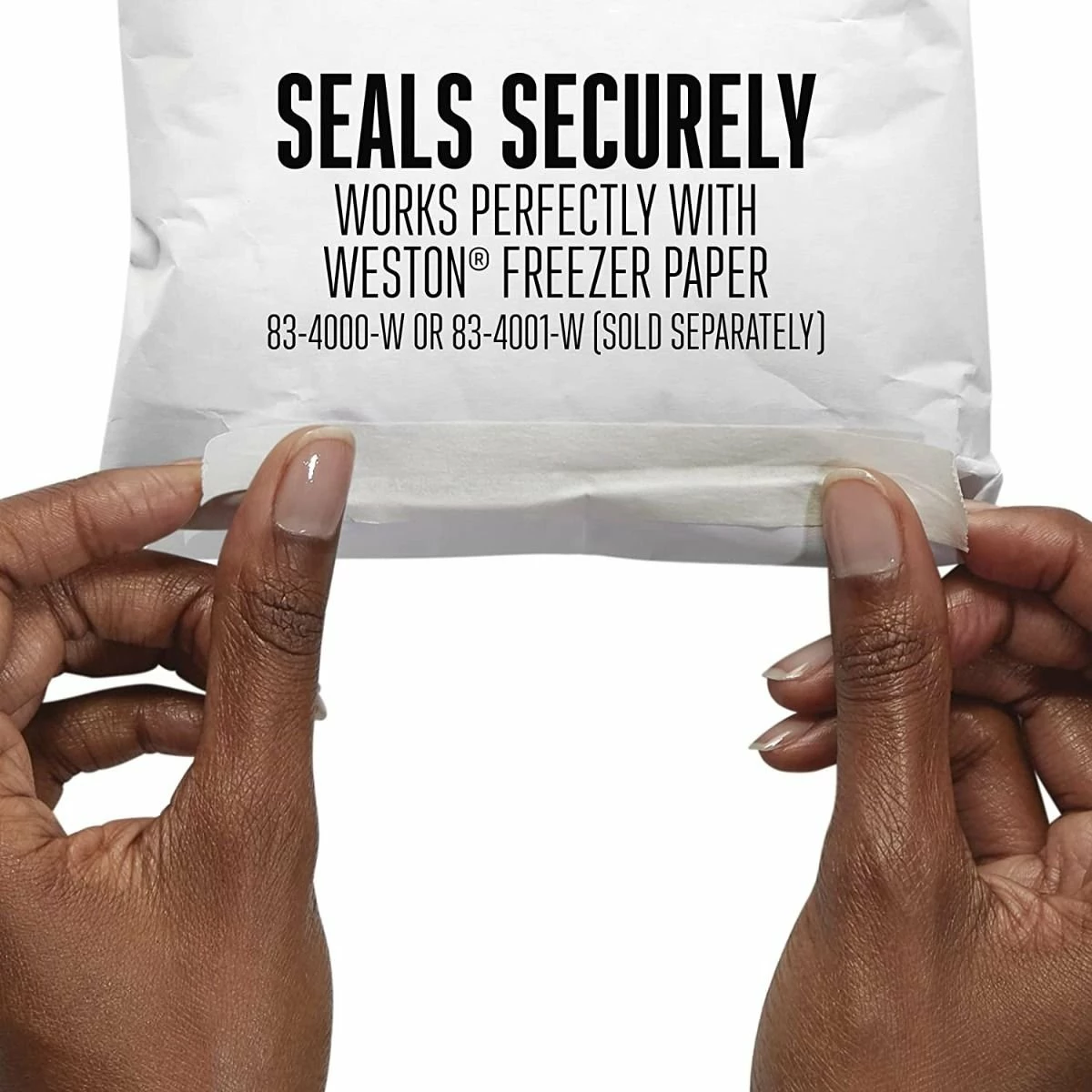Take your freezer food organization to the next level using bags and a Weston freezer bag dispenser. The weighted rubber base freezer tape dispenser holds 1in or 3in core tape spools and is ideal for large processing jobs. Quickly package and seal food for freezer preservation with the aid of the Weston freezer tape dispenser.