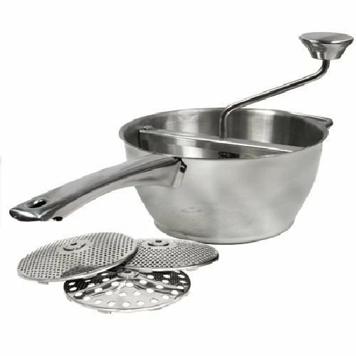 The Weston stainless-steel food mill is great for making sauces, purees, mashed potatoes, and baby foods. This food mill comes with three (3) stainless-steel milling discs that prevent pulp and skins from slipping through.ย This handy little food millย is alsoย great for making soups, jams, and spaetzle. ย
